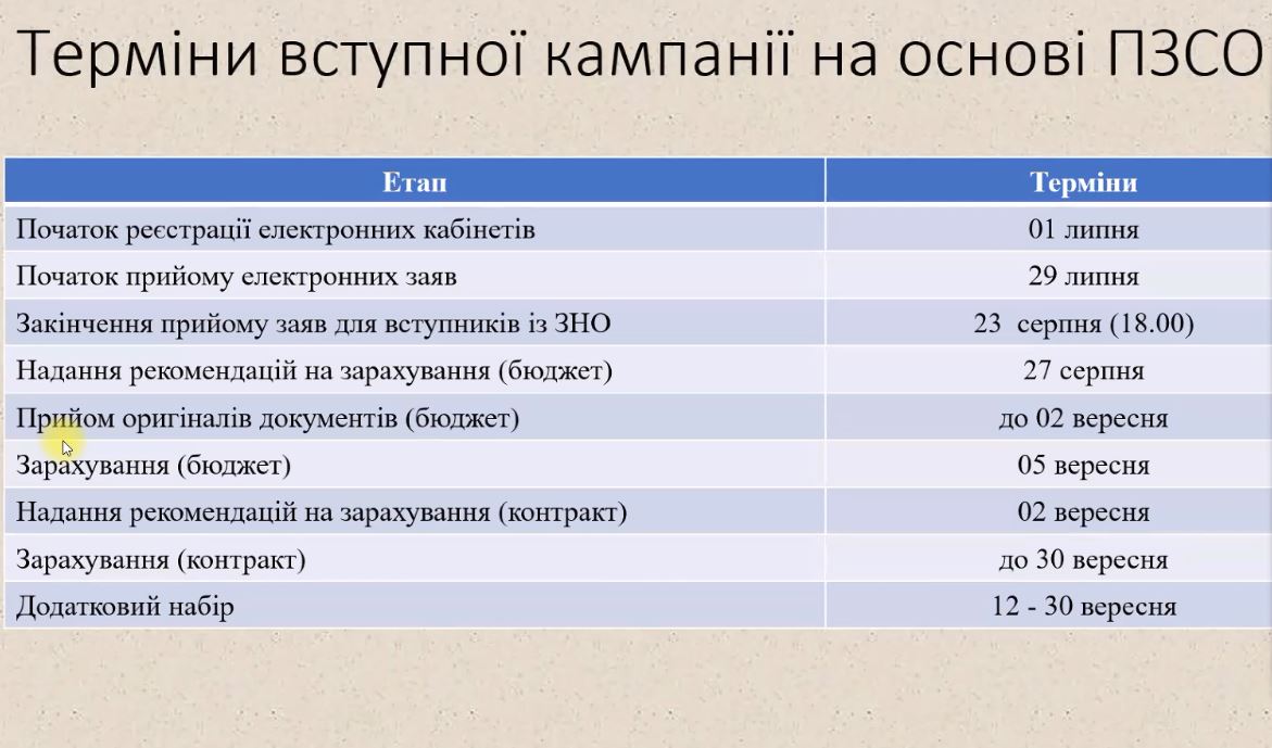 – Бакалавр 14 – 23 липня (вступ на основі повної загальної середньої освіти)