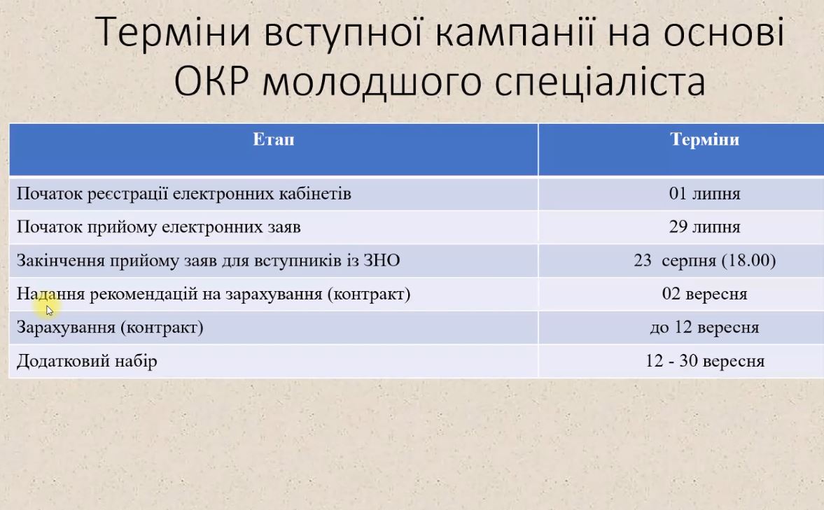 – Бакалавр 14 – 23 липня (вступ на основі освітньо-кваліфікаційного рівня молодшого спеціаліста)