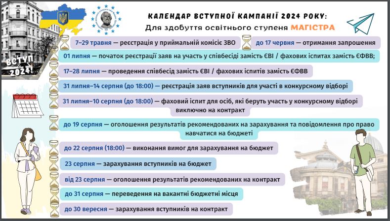 для вступу на МАГІСТРА – з 9 вересня до 18.00 26 вересня 2024 р.