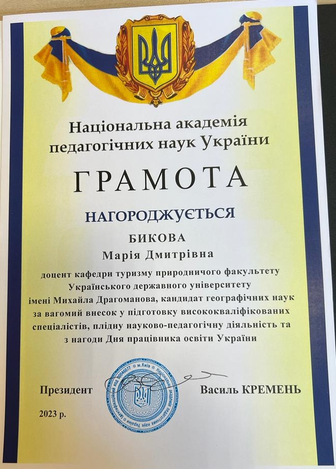 Вітаємо Бикову Марію Дмитріївну, кандидата географічних наук, з отриманням диплому доцента!