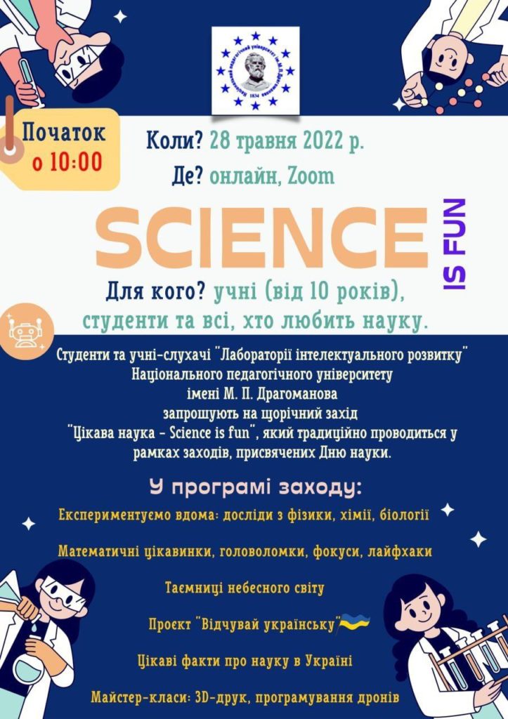 З метою розвитку науково-дослідної роботи молодих вчених НПУ імені М.П.Драгоманова та на виконання наказу МОН України № 996 від 09.11.2022 року, наказу ректора НПУ імені М.П.Драгоманова № 326 від 15.11.2022 року