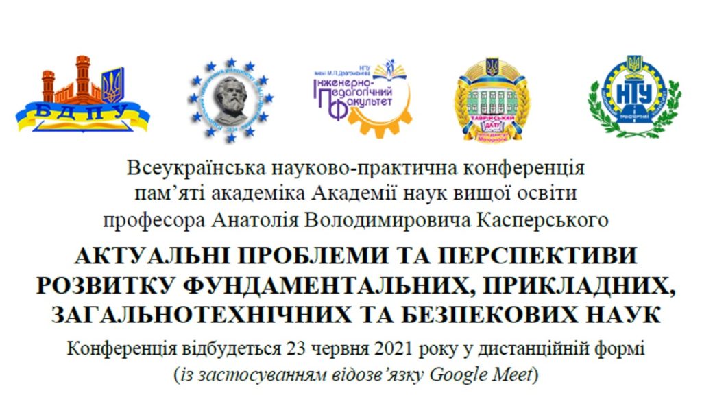 Всеукраїнська науково-практична конференція пам’яті академіка Академії наук вищої освіти, професора А. В. Касперського "АКТУАЛЬНІ ПРОБЛЕМИ ТА ПЕРСПЕКТИВИ РОЗВИТКУ ФУНДАМЕНТАЛЬНИХ, ПРИКЛАДНИХ, ЗАГАЛЬНОТЕХНІЧНИХ ТА БЕЗПЕКОВИХ НАУК"