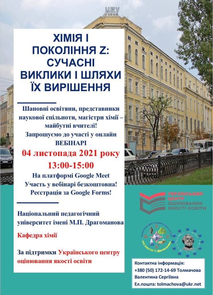 ВЕБІНАР: "ХІМІЯ І ПОКОЛІННЯ Z: СУЧАСНІ ВИКЛИКИ І ШЛЯХИ ЇХ ВИРІШЕННЯ"